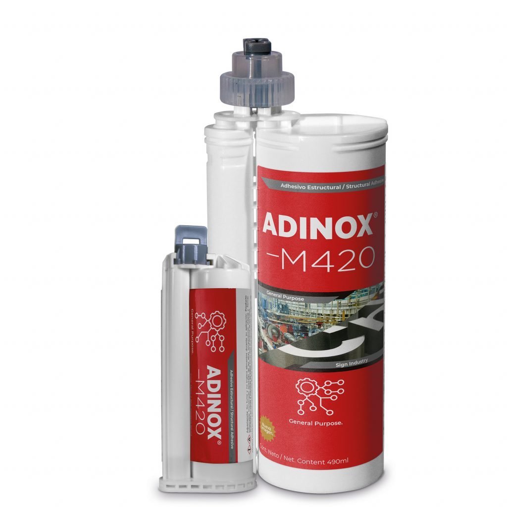 Opción económica recomendada para la fabricación de letreros en lámina de aluminio o de acero inoxidable. Puede usarse solo o en conjunto de un adhesivo estructural como el ADINOX M425.