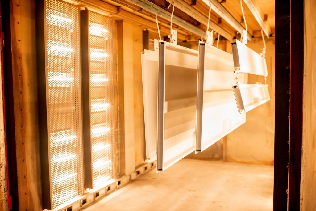 Letras y piezas pintadas con pintura electrostática que posteriormente serán horneadas.
