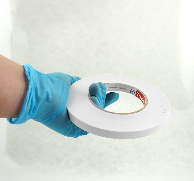 BI Tape 0960B es una cinta adhesiva doble cara con adhesivo a base de solvente acrílico para adherencia en general. Adecuada para papel brillante, mate y superficies no tejidas, recomendada para el empalme de papel, cartón, cartulinas, tela, etc.
