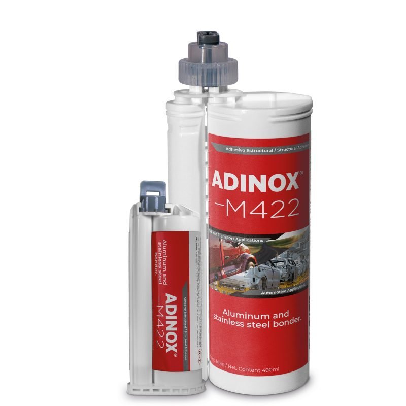 Adhesivo estructural de metacrilato ADINOX M422. Adhesivo de metacrilato de dos componentes, diseñado para la unión estructural de metales, termoplásticos y composites. Aumenta la resistencia a vibraciones, fatiga e impacto a tus ensambles.