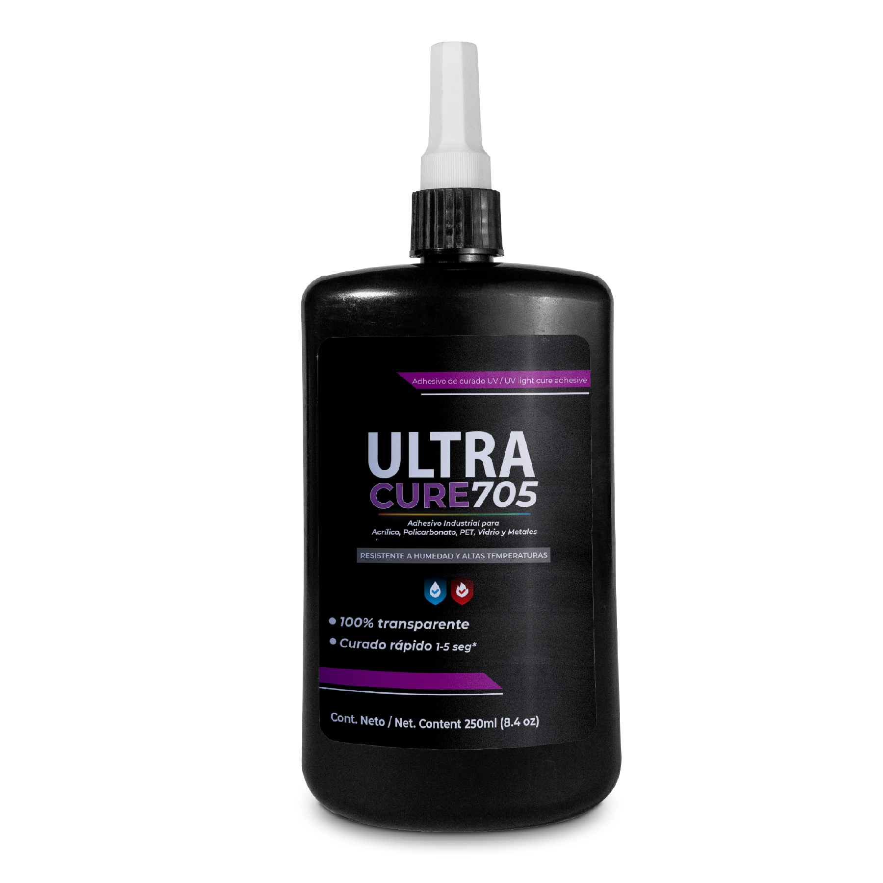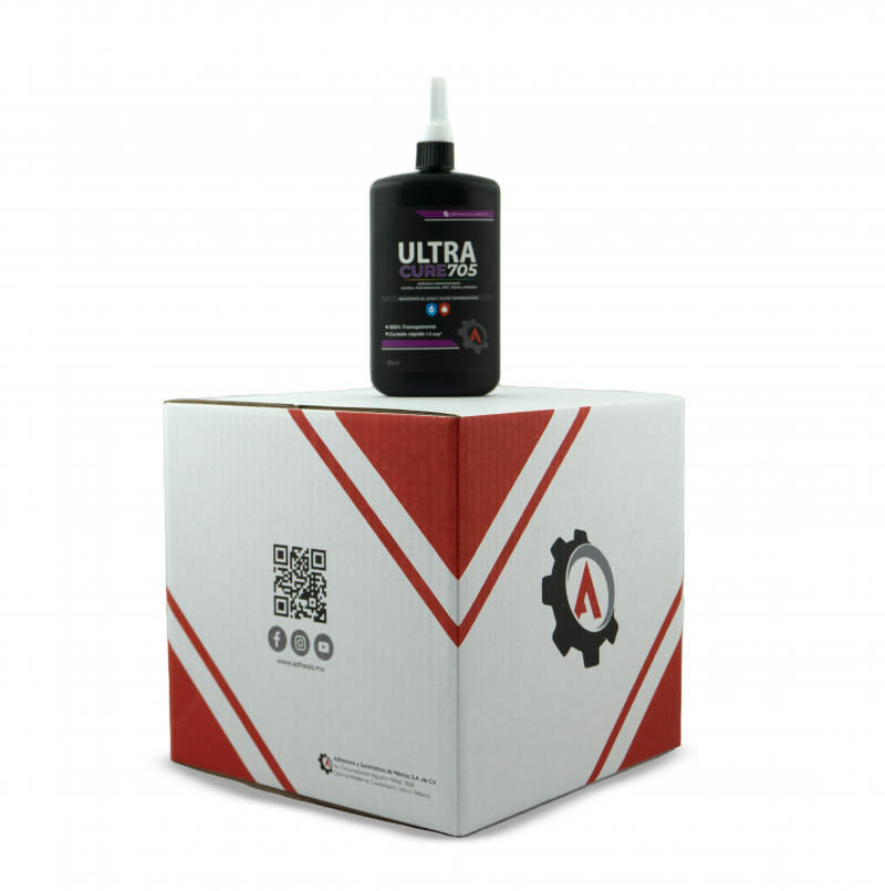 Adhesivo UV para pegar acrílico y metal. Es un adhesivo estructural, mono componente de alta viscosidad. Cura rápidamente al exponerse a la luz UV, tiene alta resistencia a la tracción y excelente resistencia a la humedad. Es un adhesivo flexible, gracias a su alta viscosidad es adecuado para aplicaciones donde se requiera el relleno de grandes separaciones, aplicaciones verticales o ensambles sometidos a vibración. Adecuado para pegar y sellar vidrio, metales y plásticos*. También puede usarse para encapsular componentes electrónicos. *Excepto PP, PE, PTFE y Silicon.