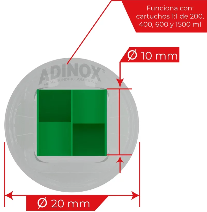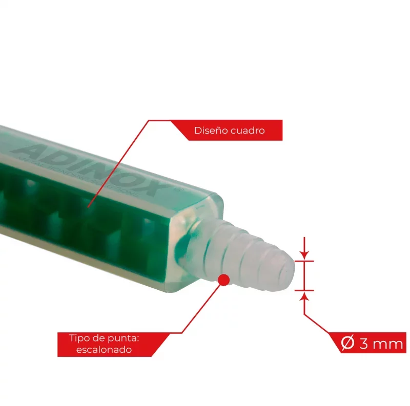 Boquilla mezcladora para cartuchos de 400 ml, 2: 1 o 1: 1. Tiene 24 elementos, una longitud de 6.2”.