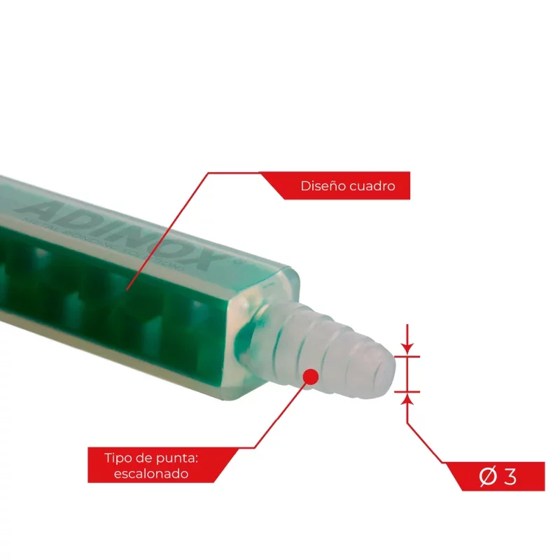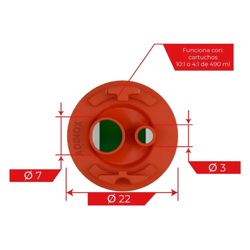 Boquilla mezcladora cuadrada, 24 elementos, 4: 1 / 10: 1, interfaz naranja, punta escalonada. Compatible con cartuchos de 490 mililitros ADINOX M410, M420, M425, M460 y M480.