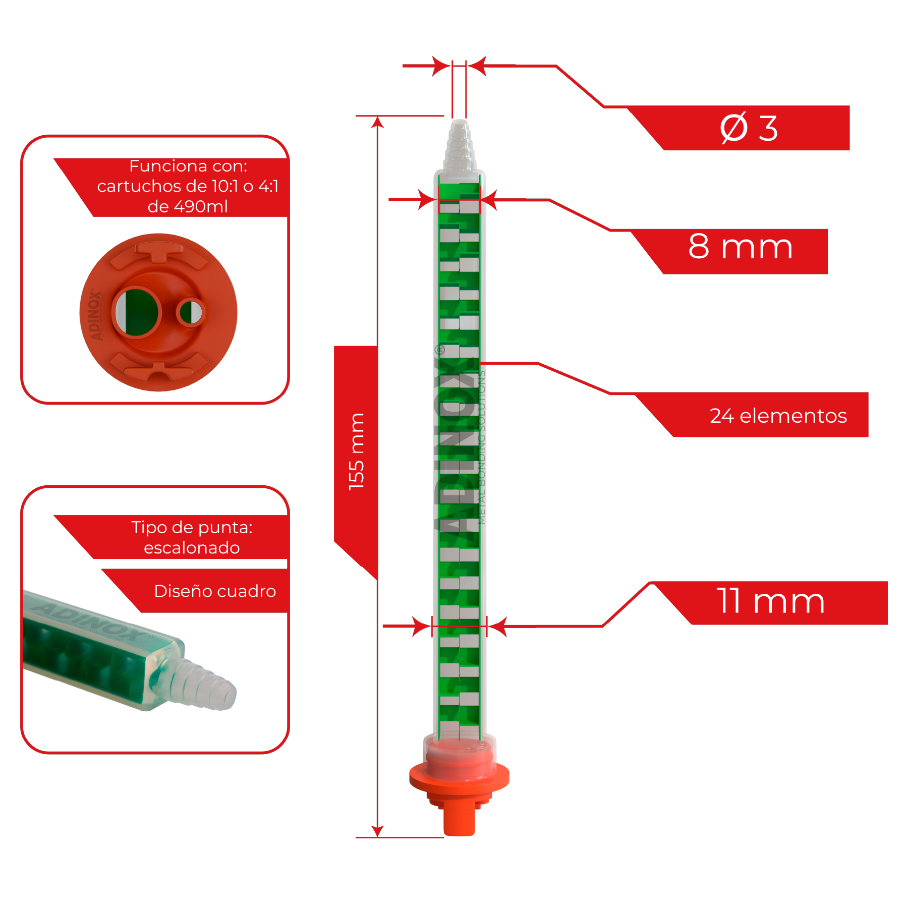 Boquilla mezcladora cuadrada, 24 elementos,  relación 10:1 para cartuchos de 490 ml