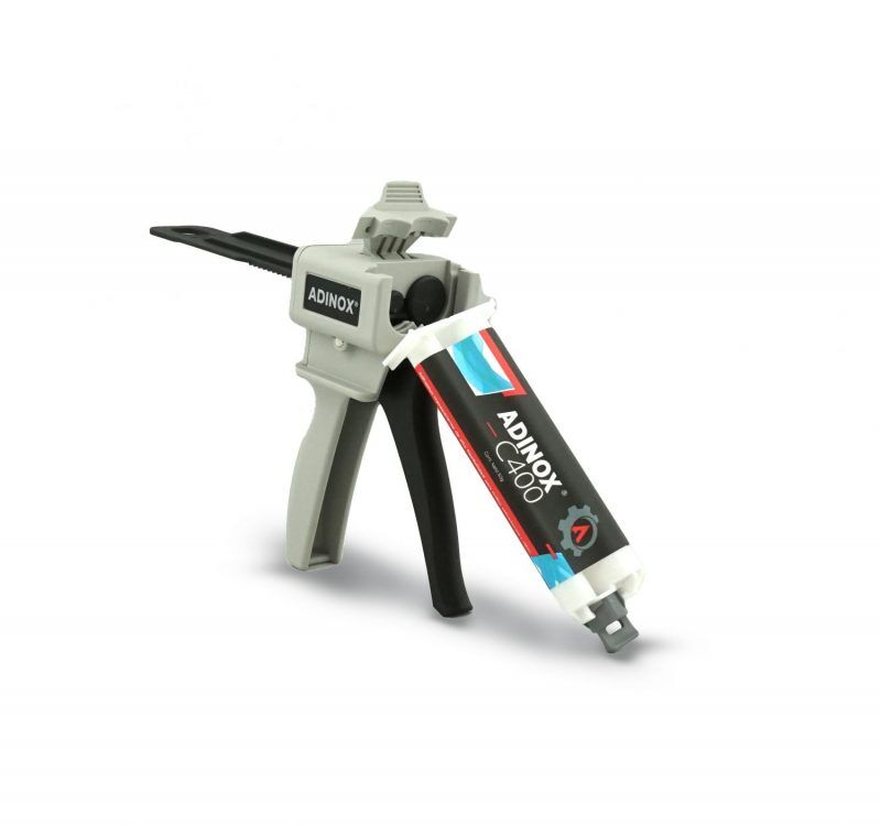 Adhesivo instantáneo, incoloro, flexible con capacidad de relleno de holgura, pega sobre una amplia gama de materiales y superficies. ADINOX C400 ofrece una flexibilidad de más del 200% y un alto poder de adhesión en un tiempo de curado de 10 minutos, brinda adhesión instantánea en plásticos, madera y metales (incluido aluminio) y superficies porosas e irregulares. La consistencia en gel permite aplicaciones verticales, el mezclador estático asegura una aplicación precisa y uniforme para un resultado excepcional.