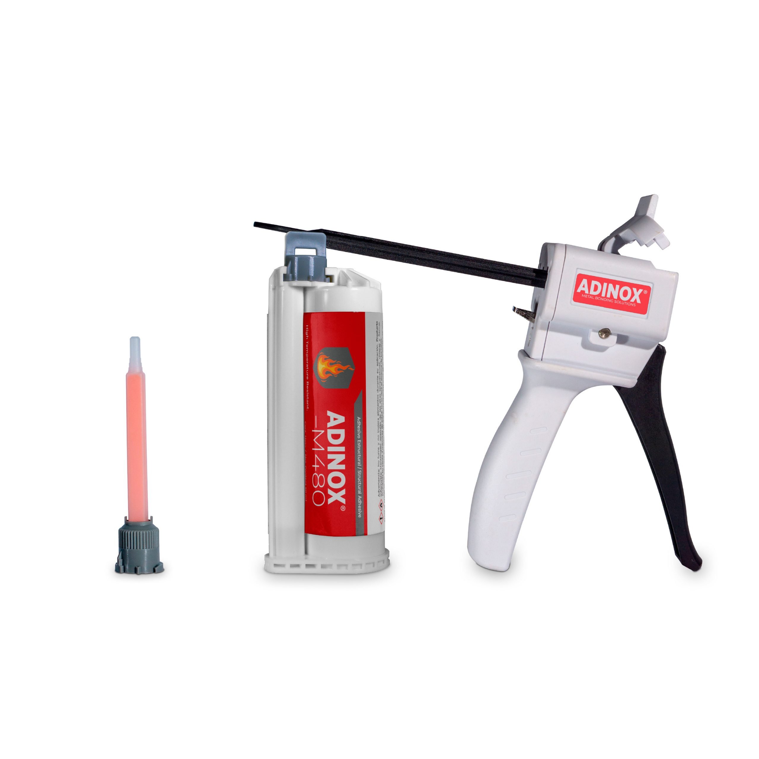 Kit ADINOX® M480 de 490 ml. Adhesivo de dos componentes de metil metacrilato con un tiempo de curado medio. Formulado para adherir metales que serán pintados con pintura electrostática, adhiere una amplia gama de plásticos, metales, y materiales compuestos. Es resistente a impactos y al envejecimiento. ADINOX M480 es flexible, resiste fluctuaciones de temperatura, tiene alta resistencia a una amplia gama de productos químicos y las condiciones ambientales.