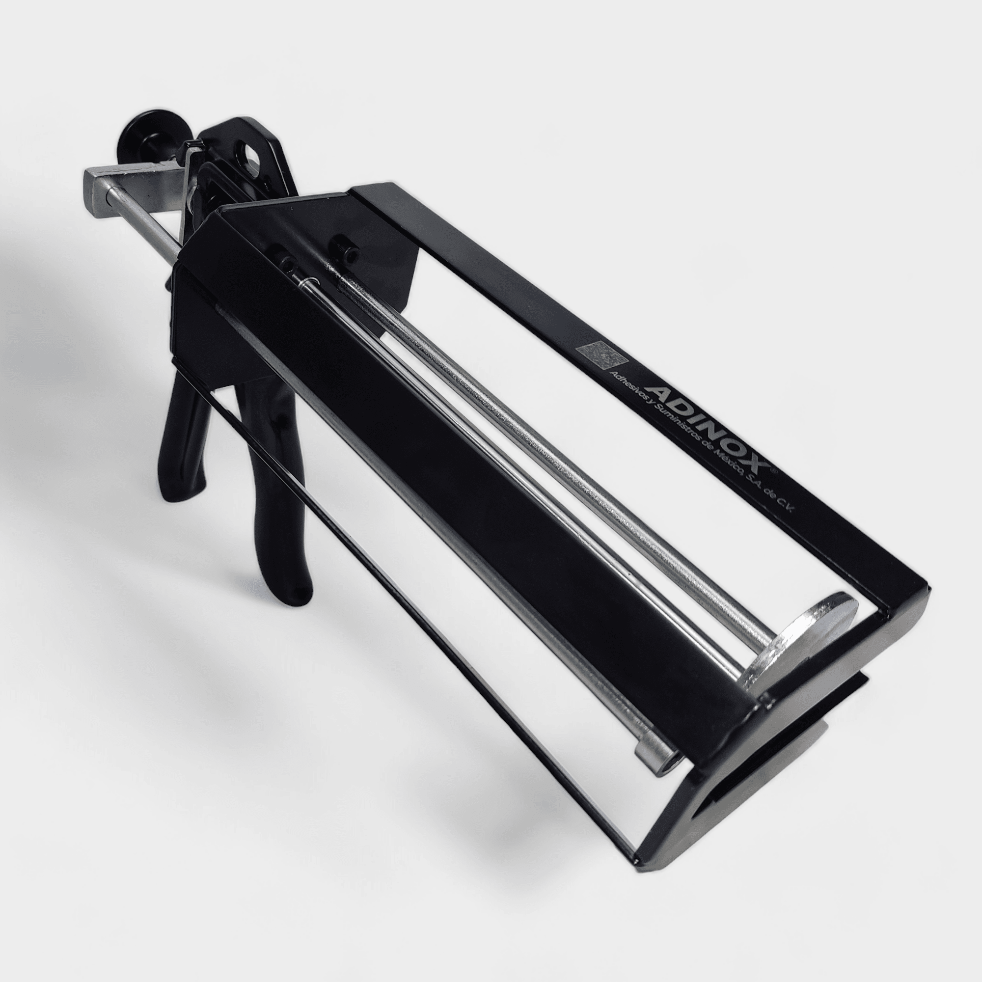 Pistola calafateadora para dispensar cartuchos bicomponentes ADINOX 490 ml, relación 10:1. Color verde. Fabricada en metal.