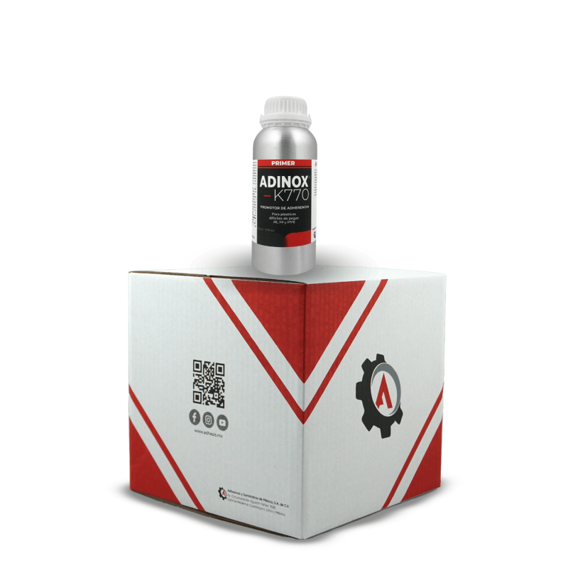 Se recomienda únicamente para unir sustratos de difícil adhesión, como el polietileno, polipropileno y politetrafluoroetileno (PTFE). ADINOX K770 imprimador de poliolefinas, no está recomendado para montajes donde se requiera una elevada resistencia al pelado.