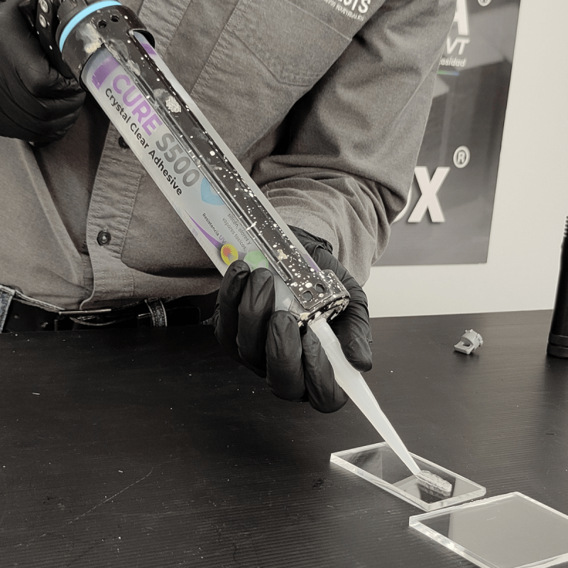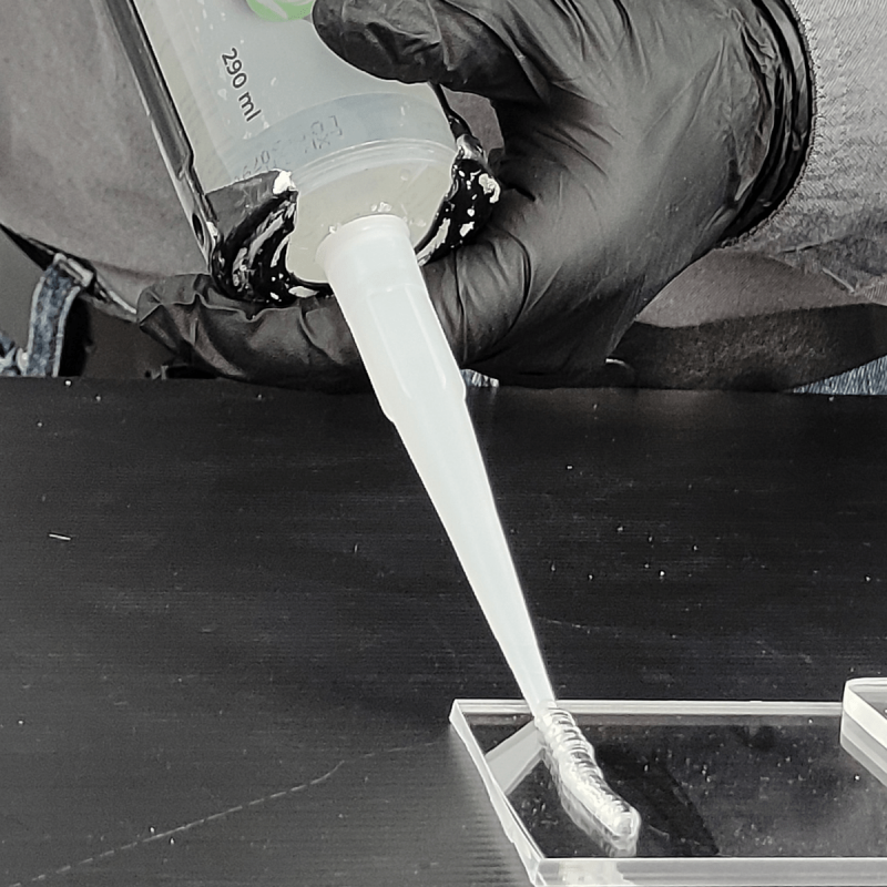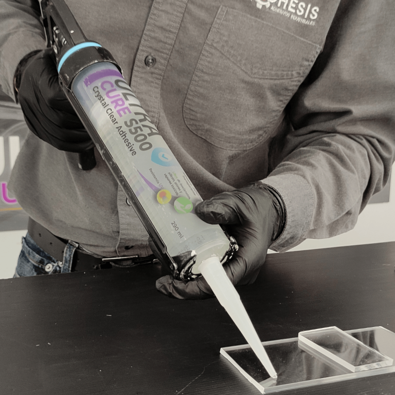 Adhesivo sellador transparente, adecuado para juntas y uniones invisibles.